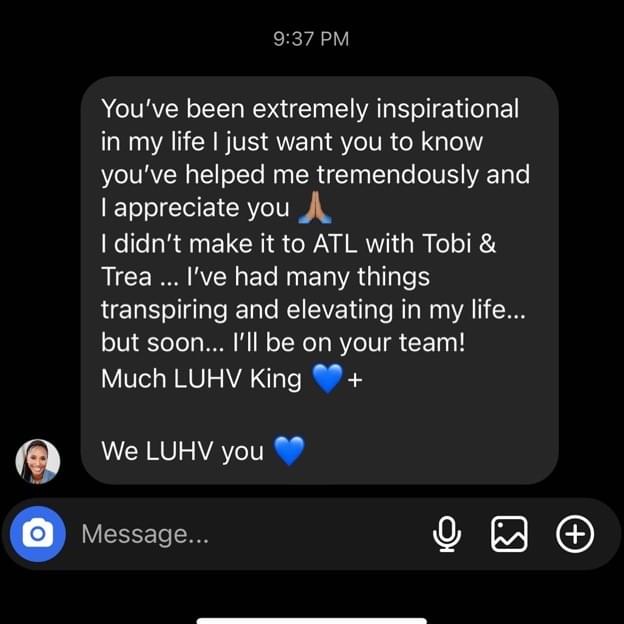 He founded the ‘Luhv + Transformation’ app— the #1 online personal to business development app— to help the individuals in his community reach a higher potential and achieve greater results in business, courses and mentorships.